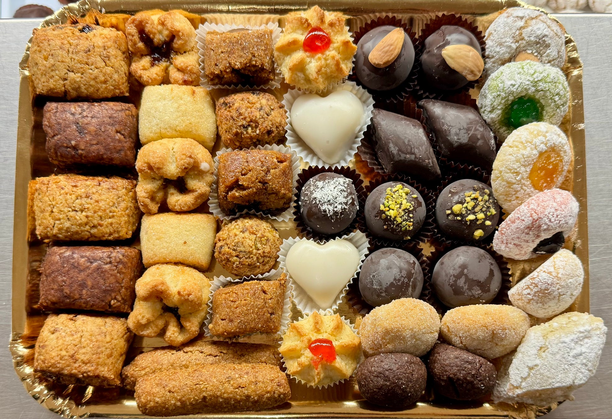 - Gusti Presenti: Biscotto cegliese con glassa, biscotto cegliese senza glassa, fagottino alle pere, biscotto all'arancia, morbidino, dolcetto ai fichi, pasta secca, pasta reale, dolcetto al cocco ricoperto di cioccolato fondente, dolcetto al caffè, tronchetto, amaretto, pasta reale croccantino e rum ricoperta di cioccolato fondente, pasta reale arancia ricoperta di cioccolato fondente, pasta reale pistacchio ricoperta di cioccolato fondente, pasta reale amarena ricoperta di cioccolato fondente, pasta secca croccantino e rum, pasta secca pistacchio, pasta secca arancia, pasta secca amarena, pasta secca zuppa inglese, limonino.